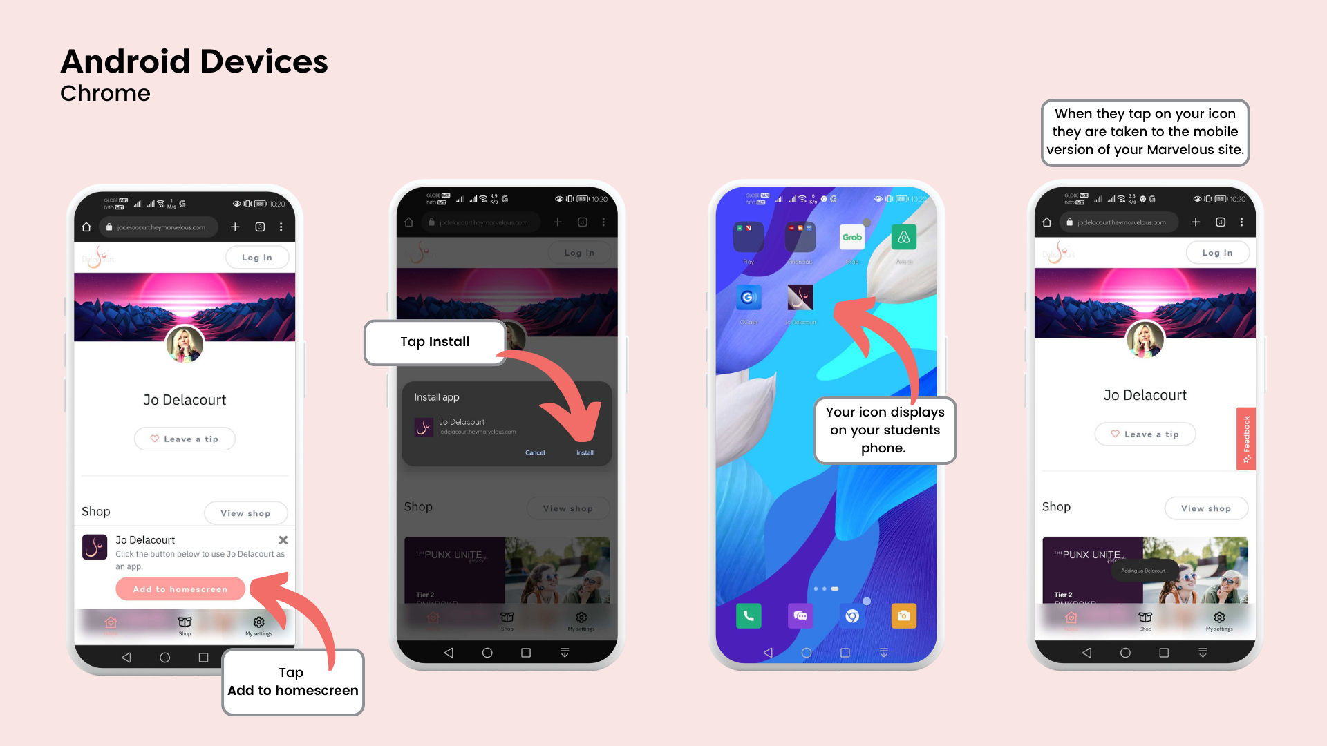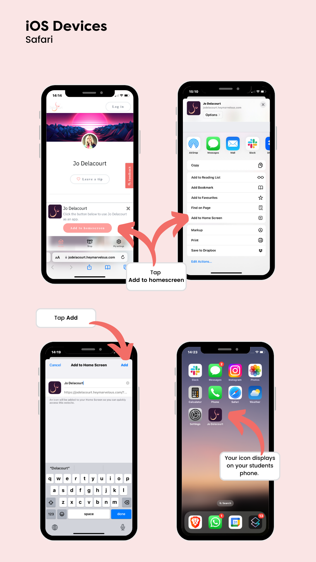 A pop-up will appear with the following instructions on how to add the application to your homescreen: